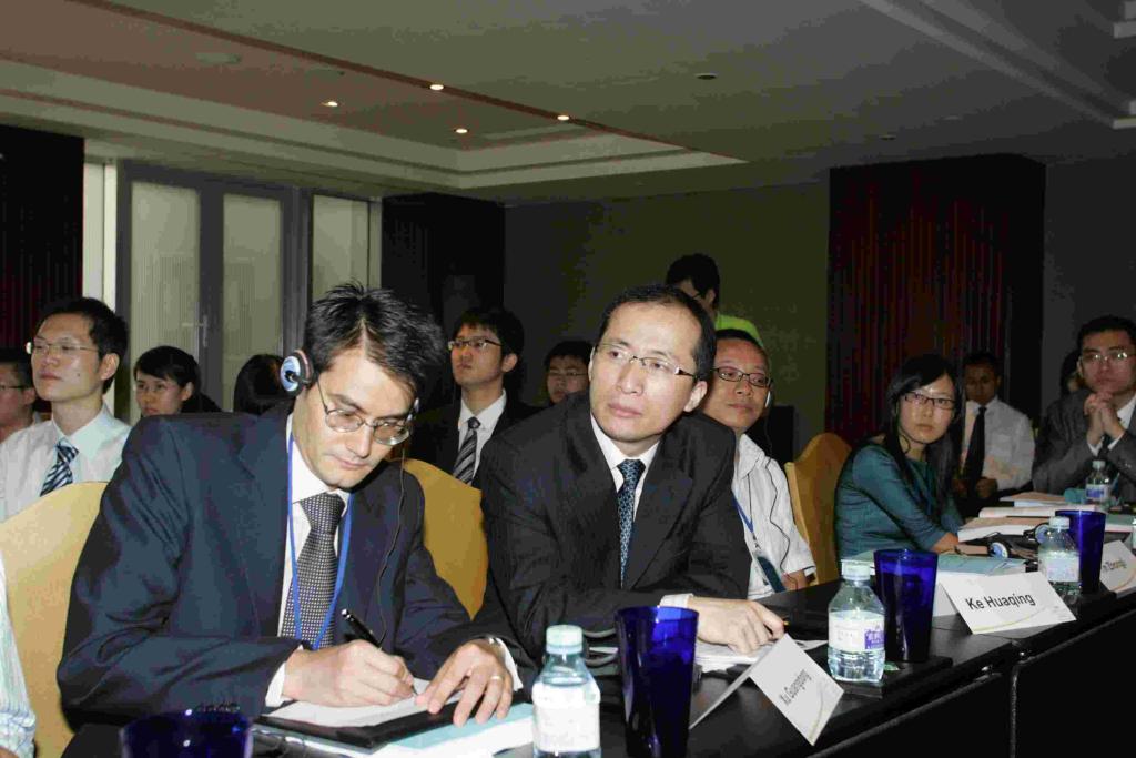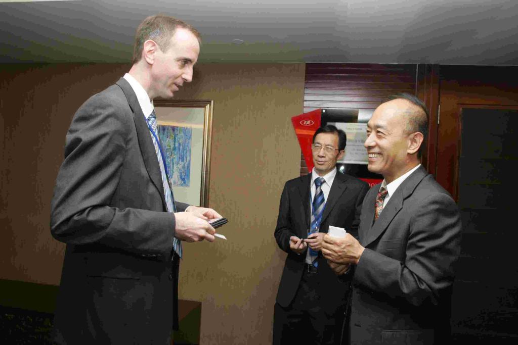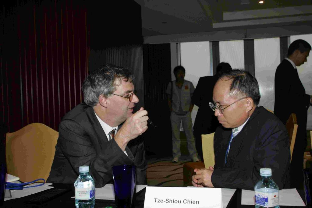 Clarke先生在和简资修教授进行交流 徐光东副教授和Weishaar博士正在认真听取大会发言