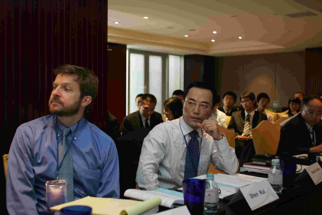 Logue教授与沈岿教授正在认真听取大会发言 朱少平主任正在发言