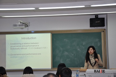 2013年11月29日晚6:00—9:00,法和经济学研究中心在学院路校区科研楼A204教室举办了2013级研究生第四次读书报告会。中心主任席涛教授、中心讲师李文静、2013级全体博士生、硕士生共同参加了本次读书报告会。本期读书报告的报告人是2013级博士莫丹博士。