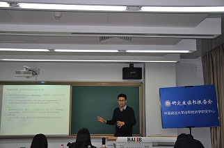2013年11月23日晚6:00—9:00,法和经济学研究中心在学院路校区科研楼A204教室举办了2013级研究生第三次读书报告会。中心主任席涛教授、中心讲师周天舒、2013级全体博士生、硕士生共同参加了本次读书报告会。本期读书报告的报告人是2013级博士高尔坦博士。