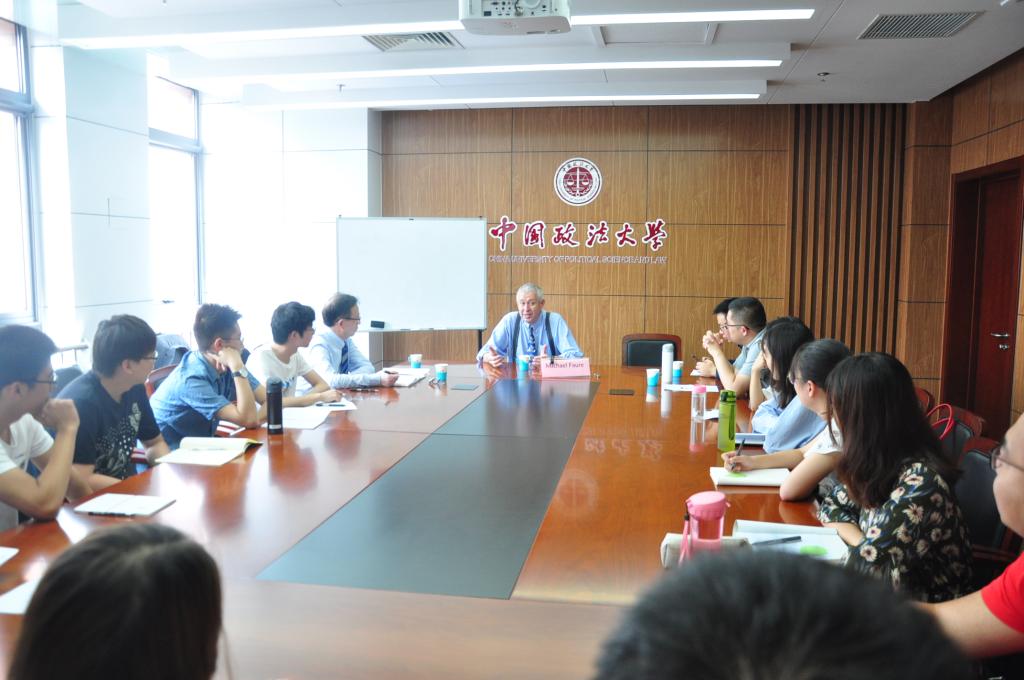 在讲座互动环节,Faure教授与研究院师生进行了讨论,并就讲座的有关问题进行了交流。研究院一年级硕士、博士生感叹,这场英文的法与经济学讲座,是研究院送给新生的最好见面礼!